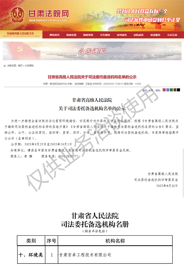 甘肅省高級人民法院司法委托備選機構